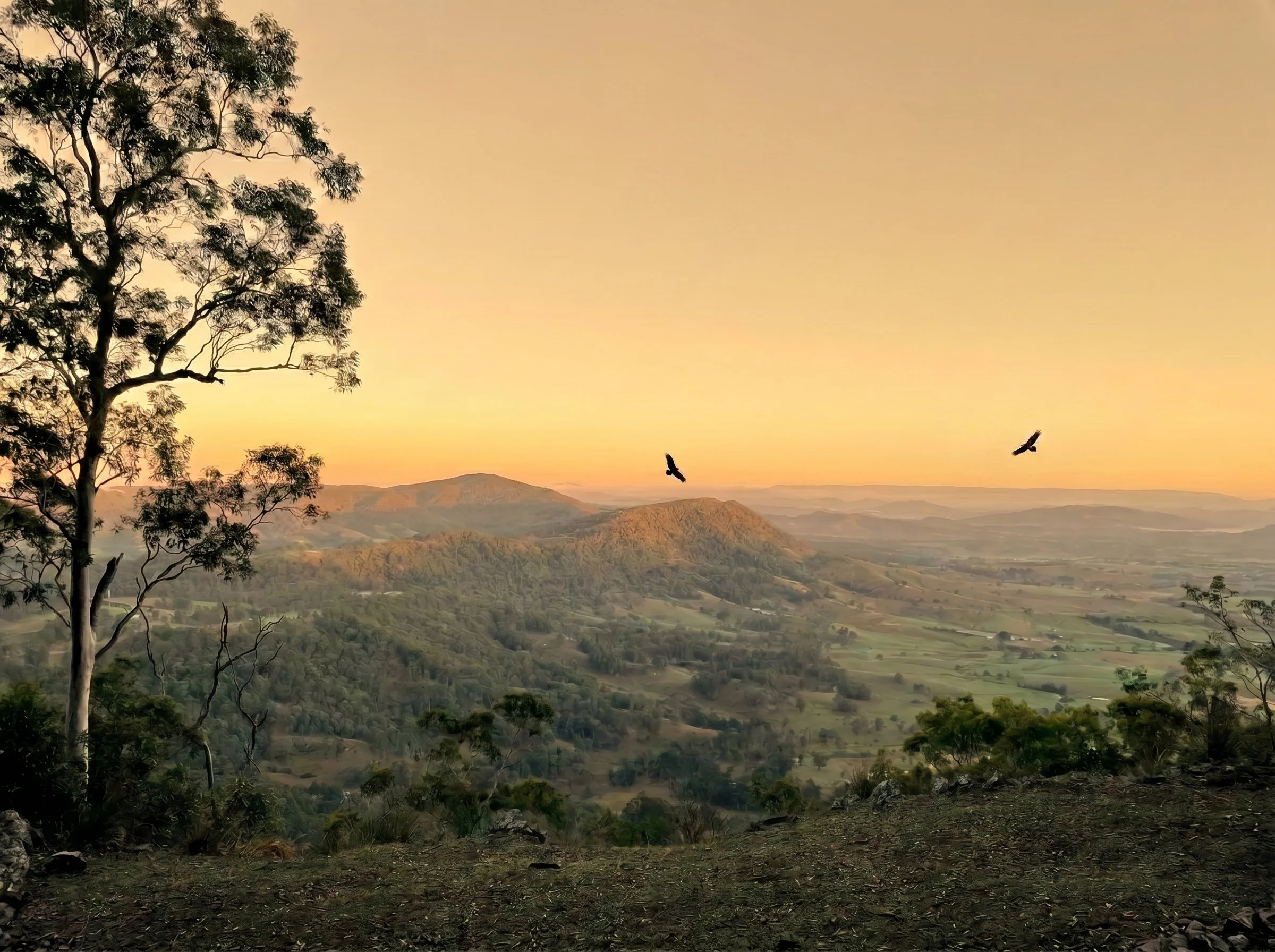 Wedge-tailed eagles circle overhead on the thermals, surveying the valley below. King parrots, rosellas and dozens of native species move through the canopy around the lodge. The dawn chorus here is unlike anything you'll hear in the city.